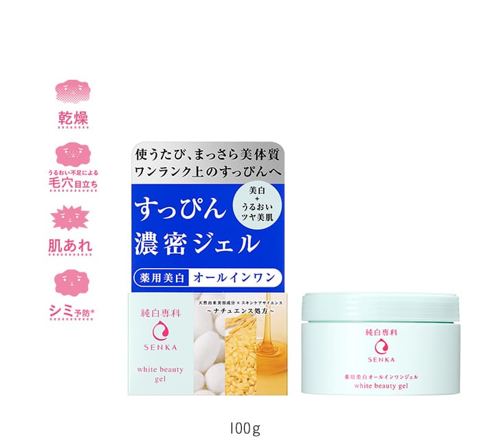 1品で濃密なうるおいケアをかなえるジェル状の薬用オールインワンで、すっぴんをくもらせる肌の4大悩みを同時にケア