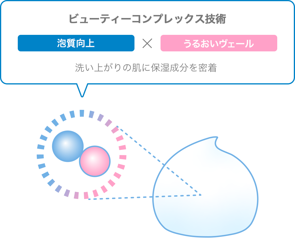 新配合 ビューティーコンプレックス*2で泡質向上*×うるおいキープ*自社従来品比